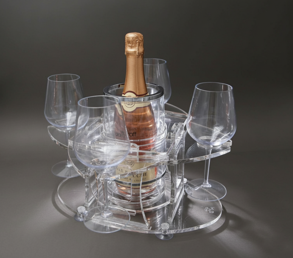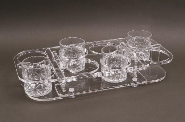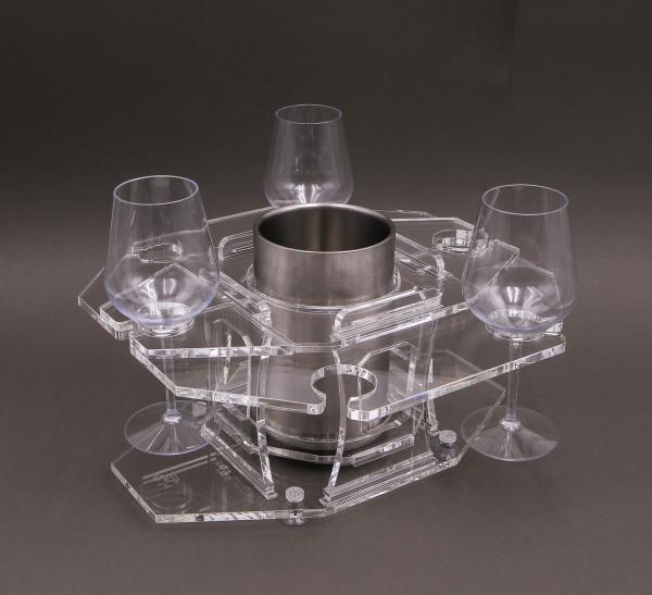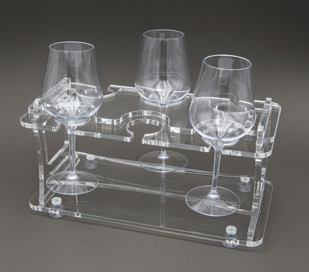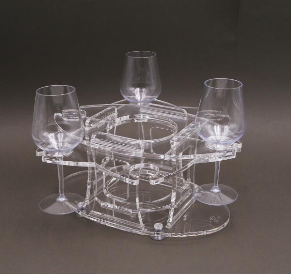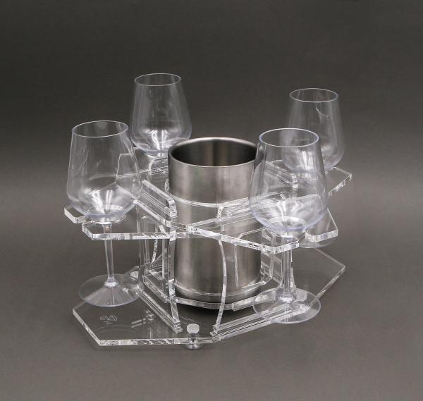 GH: Porta calici e porta bicchieri componibili e modulari ad incastro con ventose per elevata stabilità oltre che vassoi componibili.