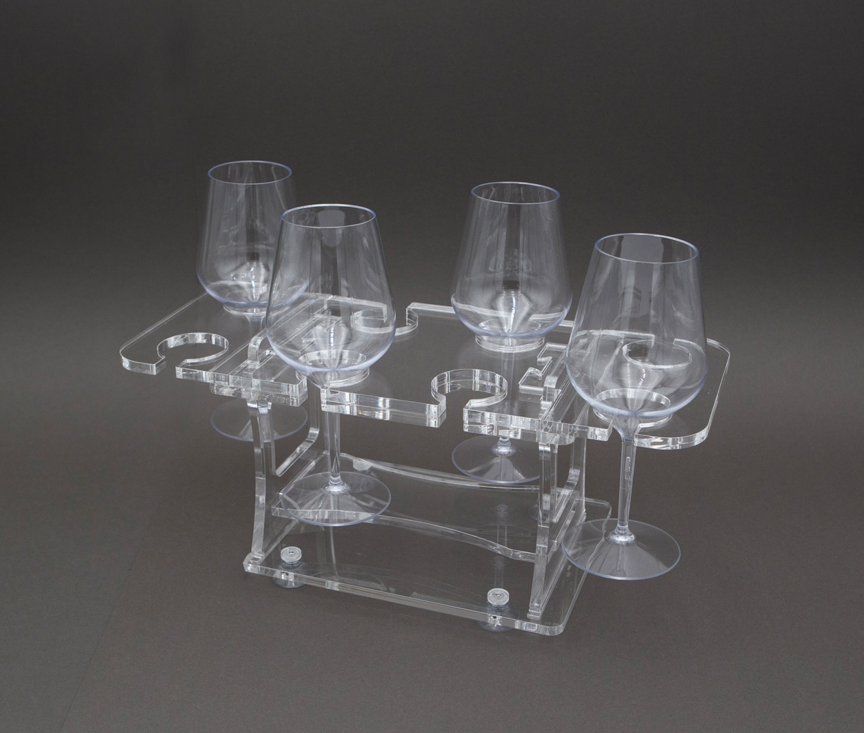 La nuova linea di VASSOI PORTA CALICI "GH" è formata da diversi modelli, componibili e scomponibili, alcuni anche modulari, che danno la possibilità di passare dai 2 agli 8 posti calice.