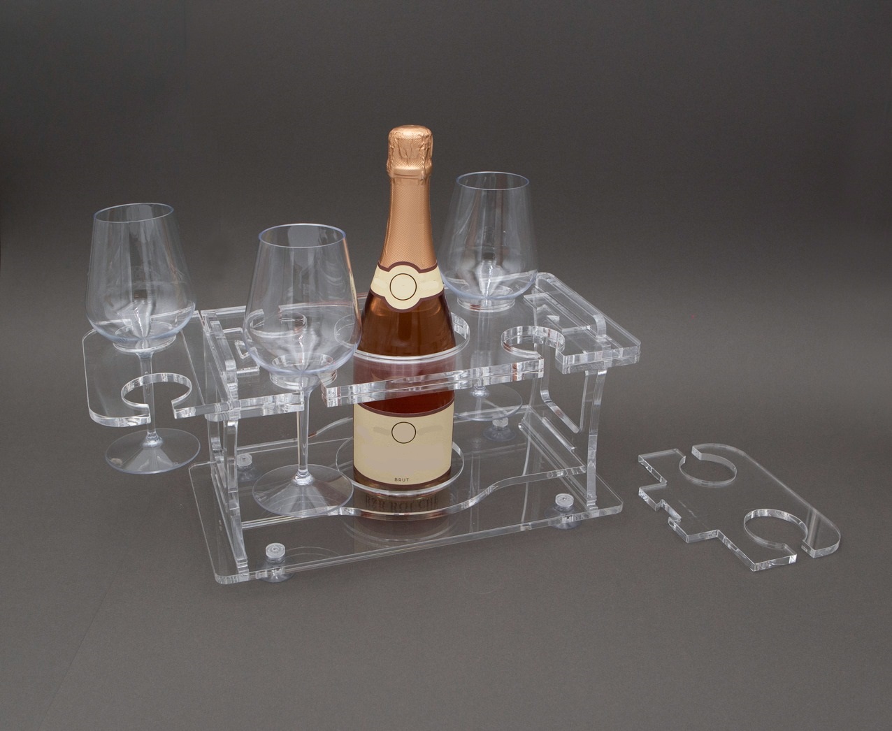 VASSOIO GH 4-6-8+B con bottigla componibile , scomponibile, e modulare , può esse assemblato  per 4 o 6 o 8  bicchiere.